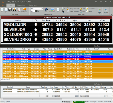 Buy/ Sell Order: DJPL SPOT provides keyboard and mouse based order entry system. For Buy order Press + (Plus) or F1 and For Sell Order Press – (Minus) or F2.