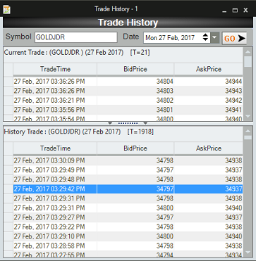 Trade History: DJPL SPOT provide trade history function. Using this function you can get last 20 days tick to tick data for all commodities traded on DJPL SPOT.