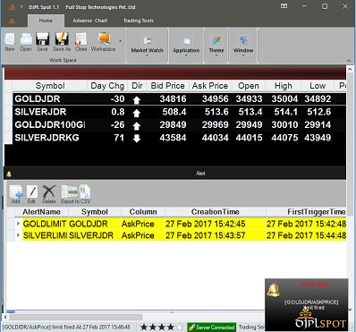 Alert: DJPL SPOT has facility of Alert System which will work on your conditions whenever your condition matched, your system will give you alerts that your condition has been matched.